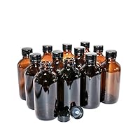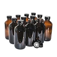 GBO GLASSBOTTLEOUTLET.COM (Pack of 12) 8 oz. Amber Boston Round with Black Poly Cone Cap