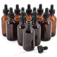 12, Amber, 2 oz Glass Bottles, with Glass Eye Droppers