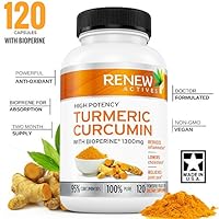 Renew Actives Double Strength Turmeric + Black Pepper 1300mg Turmeric Curcumin Supplement. Natural Joint Support