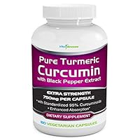 Turmeric Curcumin Complex with Black Pepper Extract – 755mg per Capsule, 180 Veg. Caps – Contains Piperine (for Superior…